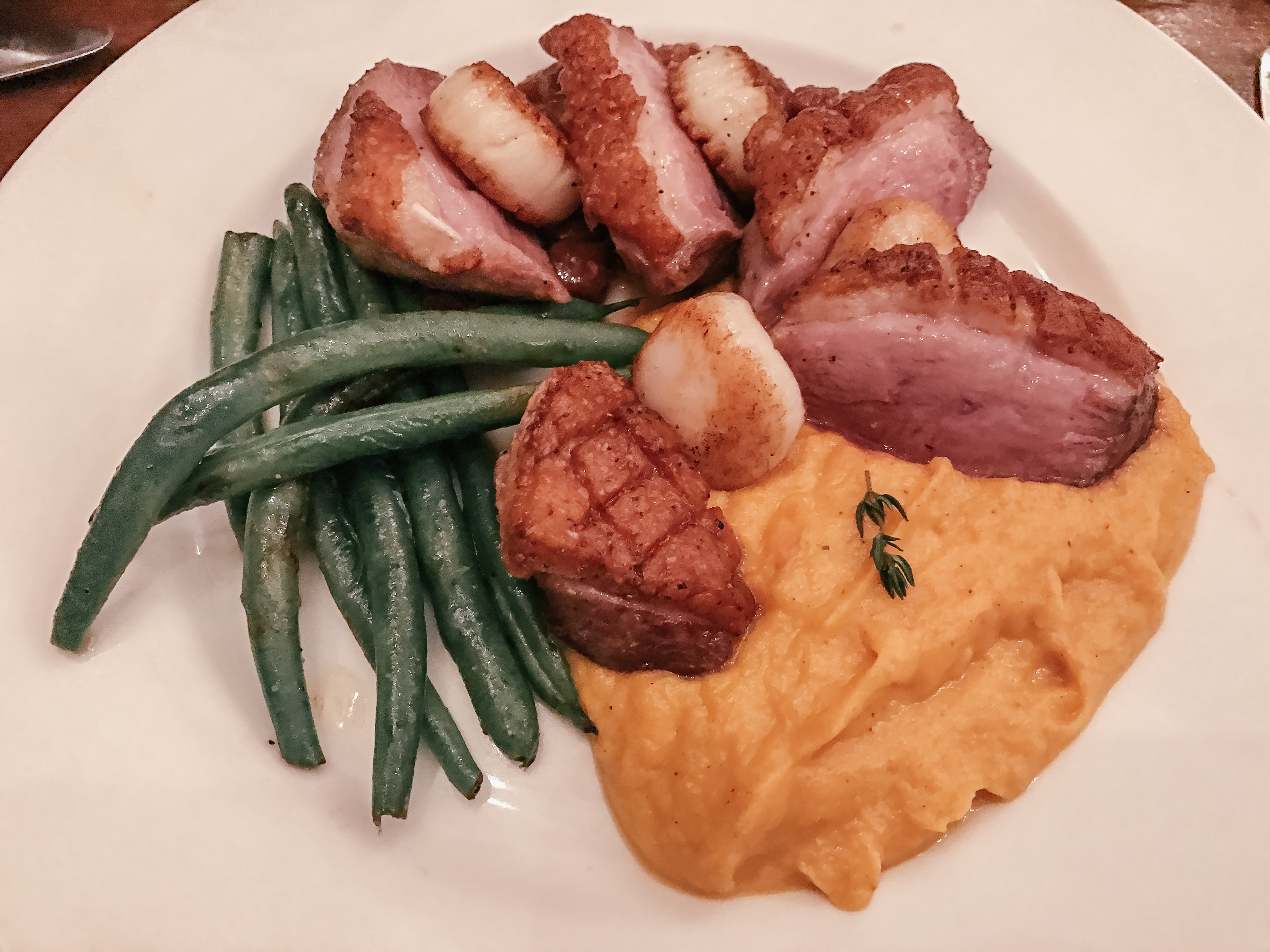 We had this appetizer yesterday (and I forget the specific details), but it was shredded duck on top of a crispy crostini with a cotton candy grape compote, which was flavored with rosemary and wildflower honey – whaaaatttt!?! It was honestly one of the best things I’ve ever had! This dish honestly had it all, and I would RUN to see if you can get it while it’s still on the menu!